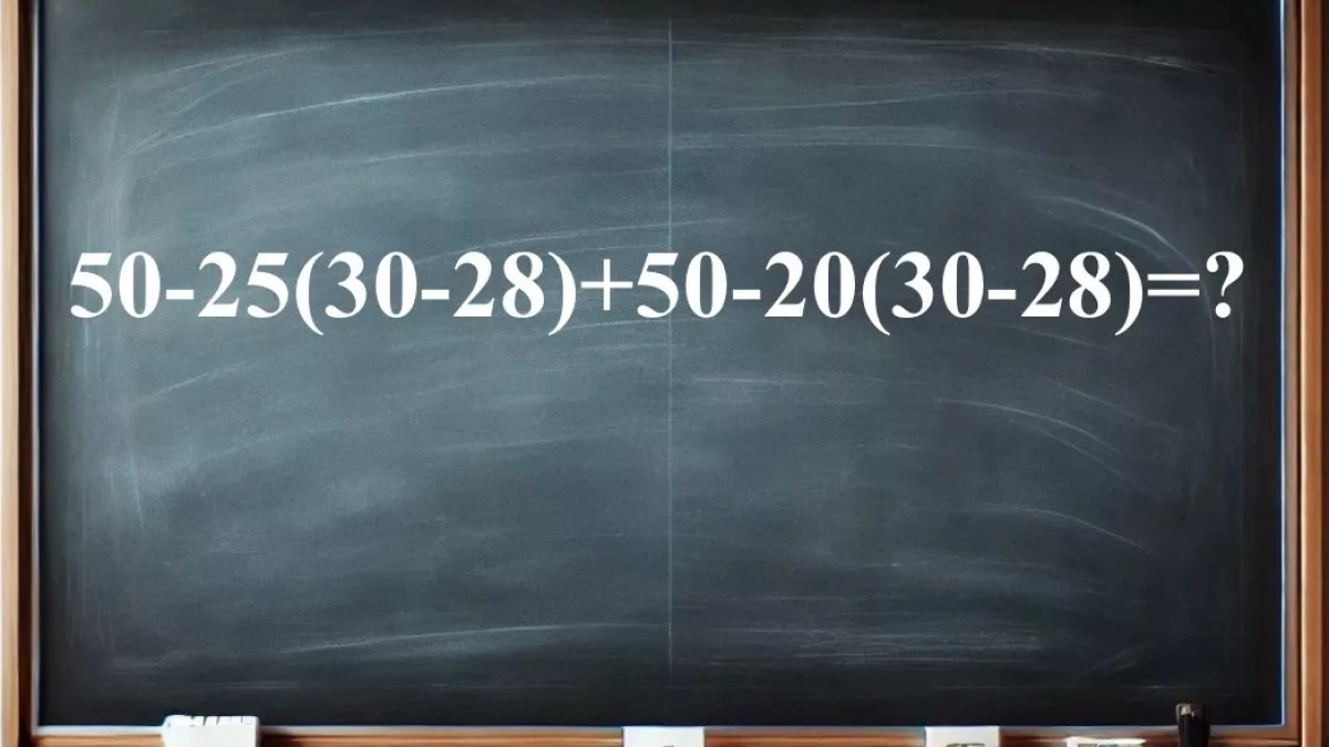 Взгляните на иллюстрацию, вот задание для уверенных в себе. В этом длинном примере повторяются некоторые элементы, но пусть вас это не сбивает с толку. Начинаем в вычитания в скобках: 30-28=2. Далее следует умножить: 25×2=50 и 20×2=40. Пример упростился до записи 50-50+50-40. Ели вы смогли получить ответ 10, то тест на IQ успешно пройден.