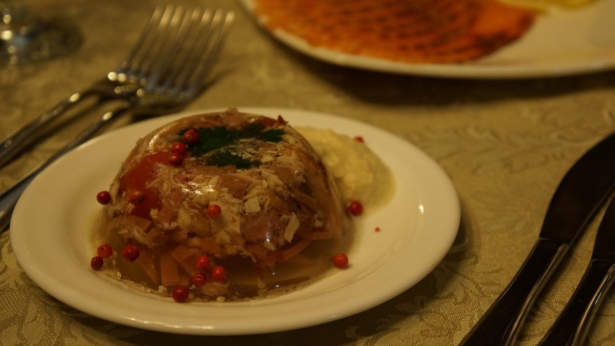 Для этого потребуется 1,6 кг говяжьей голени, 1,7 кг свиной рульки, 1,5 кг мяса птицы, 1 луковица, 1 морковь, 8 — 10 зубчиков чеснока, 3 лавровых листа. Перец горошком и соль добавляются по вкусу.