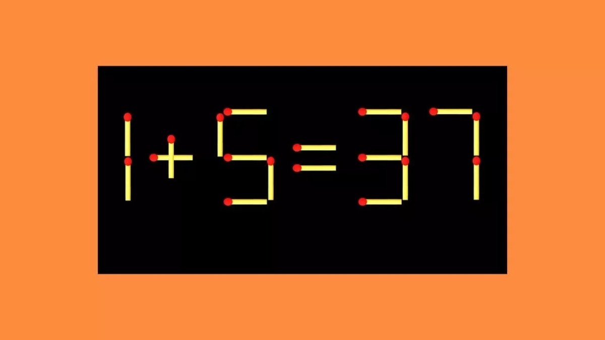 Представляем вашему вниманию одну из таких загадок. На иллюстрации показан пример «1+5=37», ошибку в котором поможет исправить перестановка всего одной спички. Другие элементы оставляем без изменений.