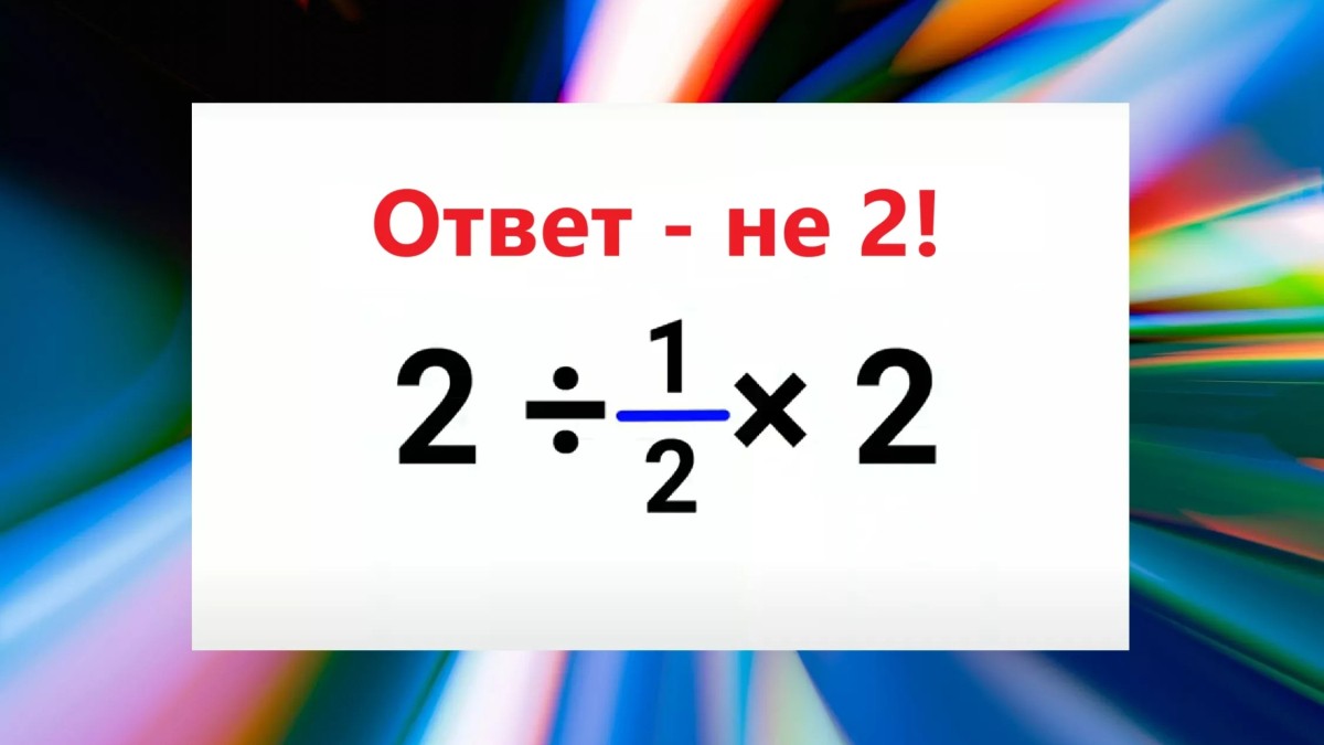 На сегодня в вашем распоряжении будет особый пример, испытание для взрослых. Дело в том, что для школьников такие задания являются рутиной, но без регулярных тренировок навык их решения ослабевает. Посмотрите на иллюстрацию, надо вычислить 2:½×2 за 10 секунд и без ошибок.