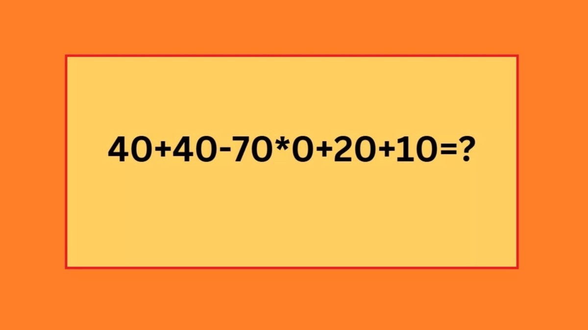 Представляем вашему вниманию пример для устного счета, записанный на иллюстрации. Необходимо выполнить пять действий 40+40−70*0+20+10 так, чтобы не было стыдно перед своей учительницей математики. Отличники справятся за 15 секунд.