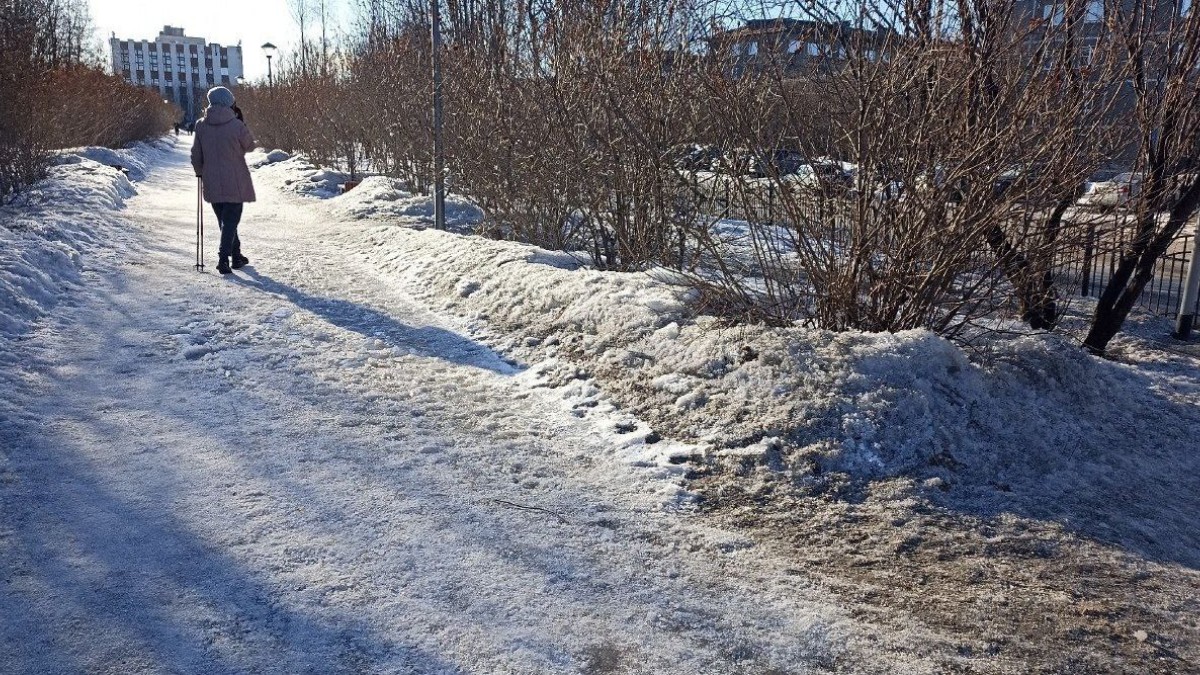 Мурманский сквер «Аллея поколений», расположенный на улице Алексея Хлобыстова, находится в плачевном состоянии — по словам местных жителей, территорию зоны отдыха не расчищали практически всю зиму. Все пешеходные дорожки покрыты толстым слоем наледи и снега, который подтаивает в периоды оттепели и вновь сковывает асфальт, превращая его в настоящий каток.