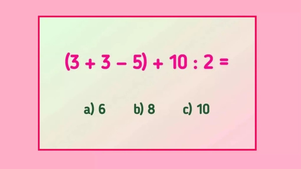 Взгляните на иллюстрацию, мы подготовили пример для тренировки. Вычислить необходимо (3+3-5)+10:2, и у вас есть три варианта ответа. Поторопитесь, время не ждёт.