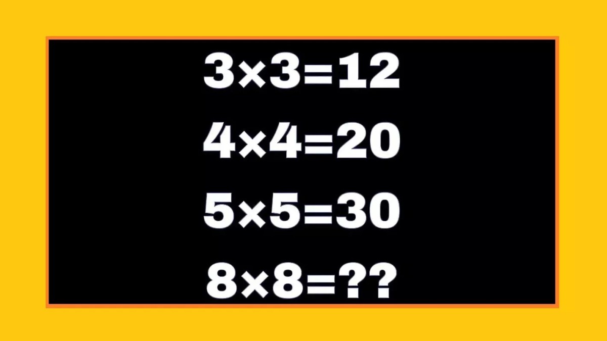 Если ваша сообразительность не дремлет, уже получилось нащупать верную стратегию. На самом деле в этих равенствах выполнялось не только умножение, но и дополнительное сложение по принципу 3×3+3=12 и 4×4+4=20. Значит, мы можем смело умножать восьмерку сразу на число 9. Верный ответ: 8×8=72, да простит нас таблица умножения.