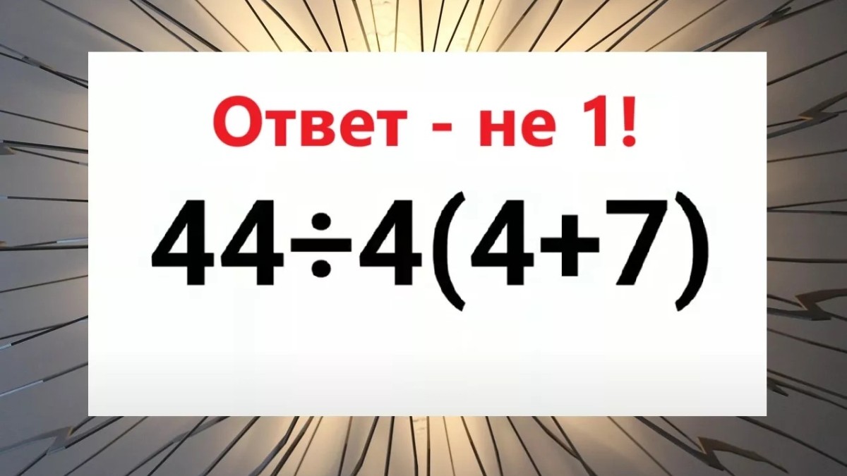 Сперва выполняется сложение в скобках: 4+7=11. Далее идет деление, ведь у умножения нет преимущества перед ним: 44:4=11. Завершает испытание такое действие: 11×11=121. Если вы сбились с пути на этот раз, регулярная практика исправит проблему, не переживайте.