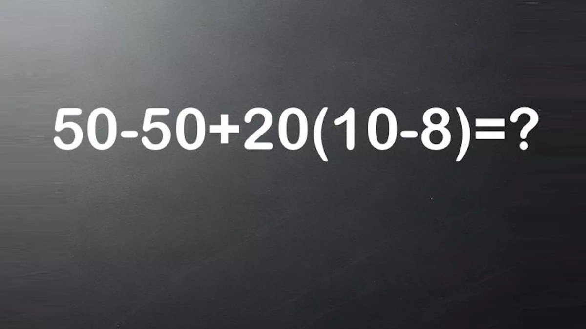 Представляем вашему вниманию задание, показанное на иллюстрации. Высчитать необходимо 50−50+20(10−8), такие примеры задают в начальной школе. Вот только правила арифметики вы давно не повторяли, с порядком действий определиться смогут тоже не все.