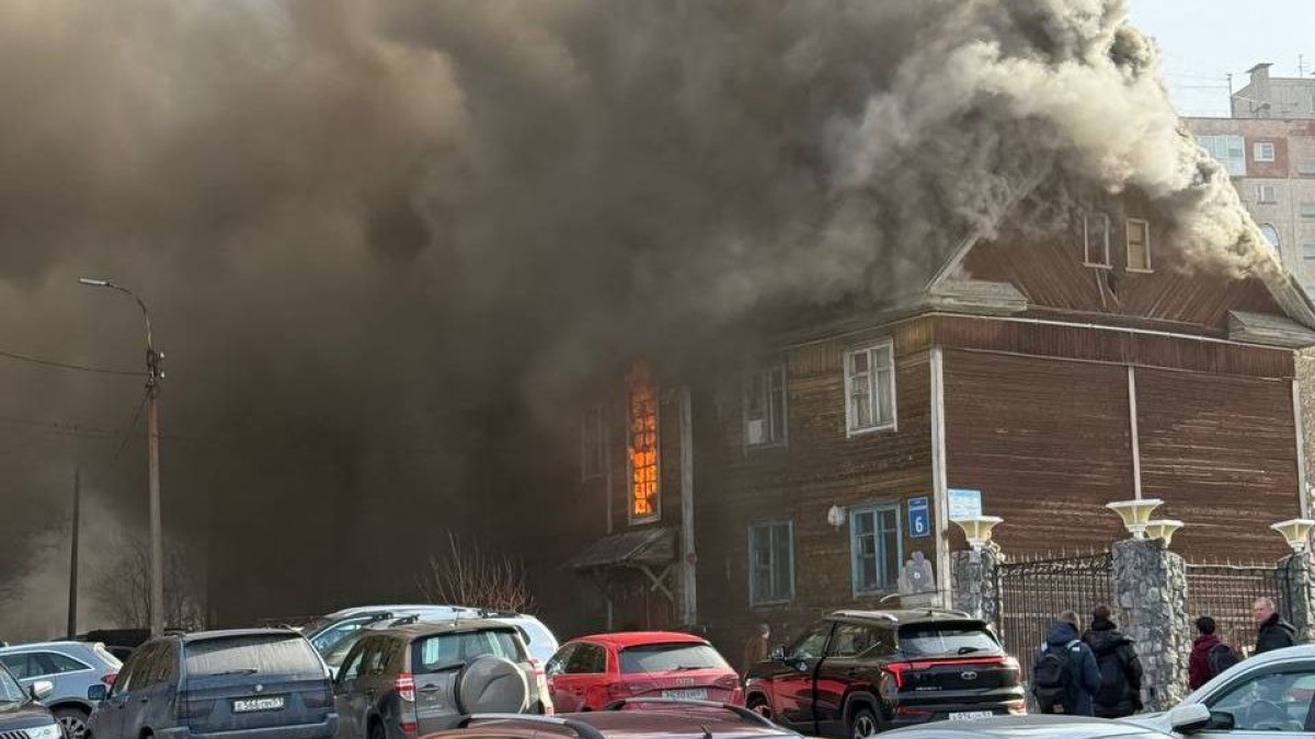 Прямо сейчас на улице Сполохи, 6 в Мурманске горит двухэтажный деревянный дом 1935 года постройки, сообщают в МЧС.