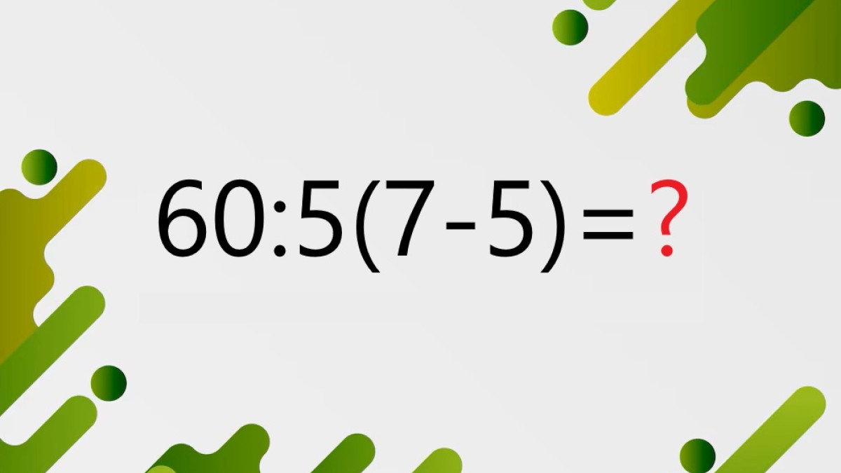 Давайте проверим подсчеты. Начинаем с вычитания в скобках: 7-5=2. Далее выполняется деление, ведь у умножения нет перед ним приоритета: 60:5=12. Остается финальное действие: 12×2=24. Результат получен, при высокой мозговой активности на это уходит не более 15 секунд.