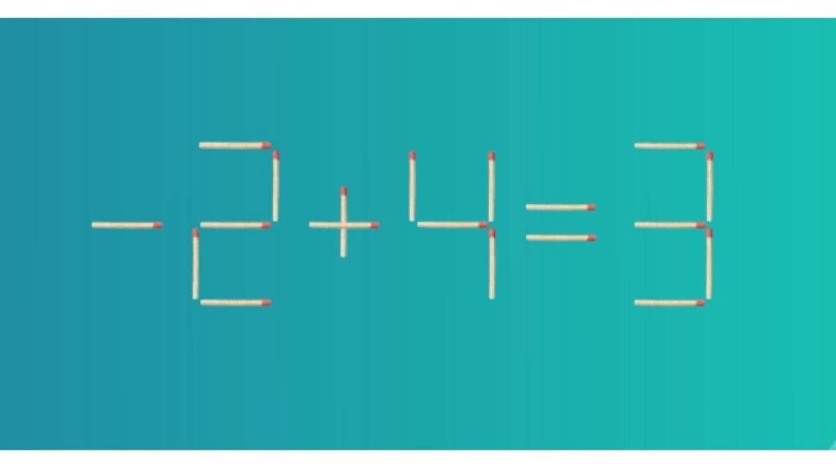 Попробуйте на вкус спичечную головоломку, вот на иллюстрации показано равенство «-2+4=3». Верным его не назовешь, но на исправление примера нам дается только одна спичка. Найдите возможность переставить одно звено в этой записи, чтобы исправить ситуацию.