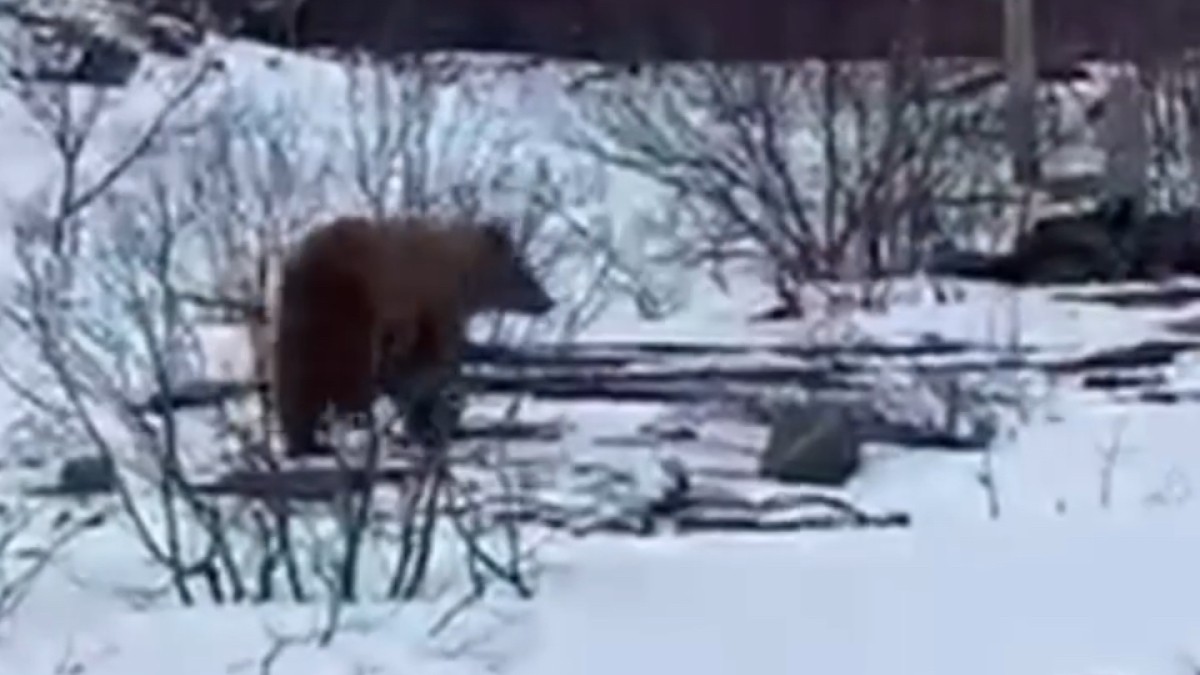 В Териберке туристы заприметили бурого местного жителя. Мишка прогулочным шагом совершал утренний променад, возможно шел на завтрак. Кадры встречи с косолапым разместили в telegram-канале «Териберка».