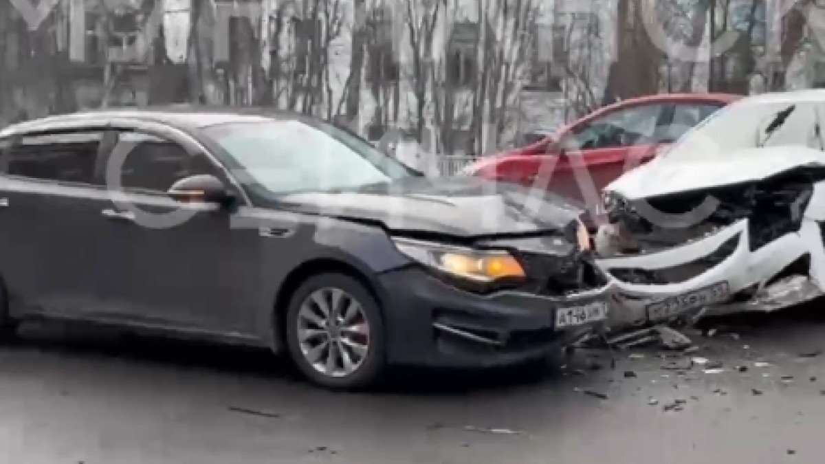 Какая потусторонняя сила притянула Kia Optima и Hyundai Solaris друг к другу. Однако судя по силе повреждений страшно предположить, какая скорость была при столкновении.