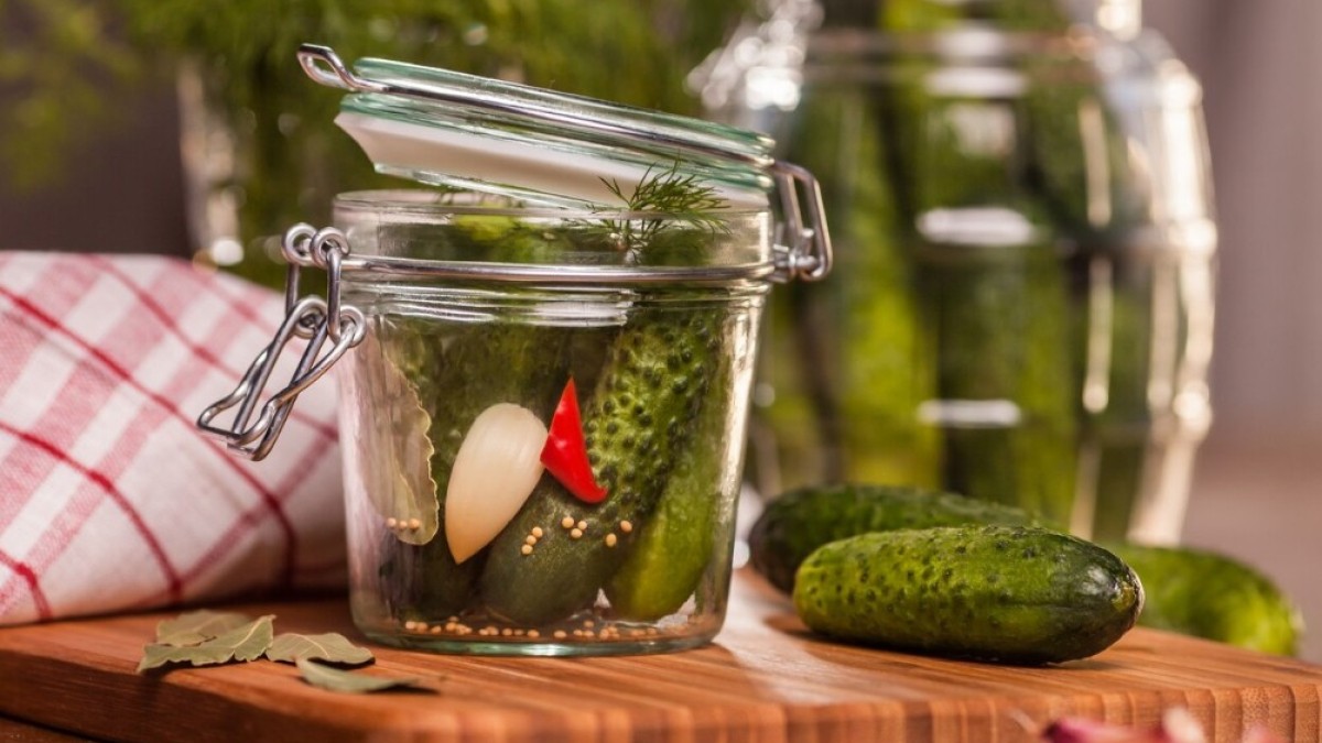 Для этого потребуется 1 килограмм огурцов, 1,5 столовые ложки соли, 1 чайная ложка сахара, 4 зубчика чеснока. Также нужен будет укроп и другие травы — по желанию.