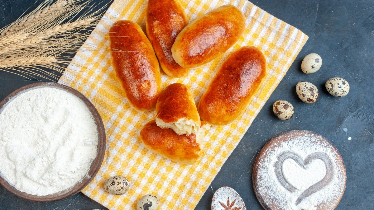 Тесто без дрожжей не отличить от дрожжевого. Для теста понадобится 400 мл кефира, 2 яйца, 650 г муки, по чайной ложке соли, сахара и соды, немного лимонной кислоты и 3 столовых ложки растительного масла.
