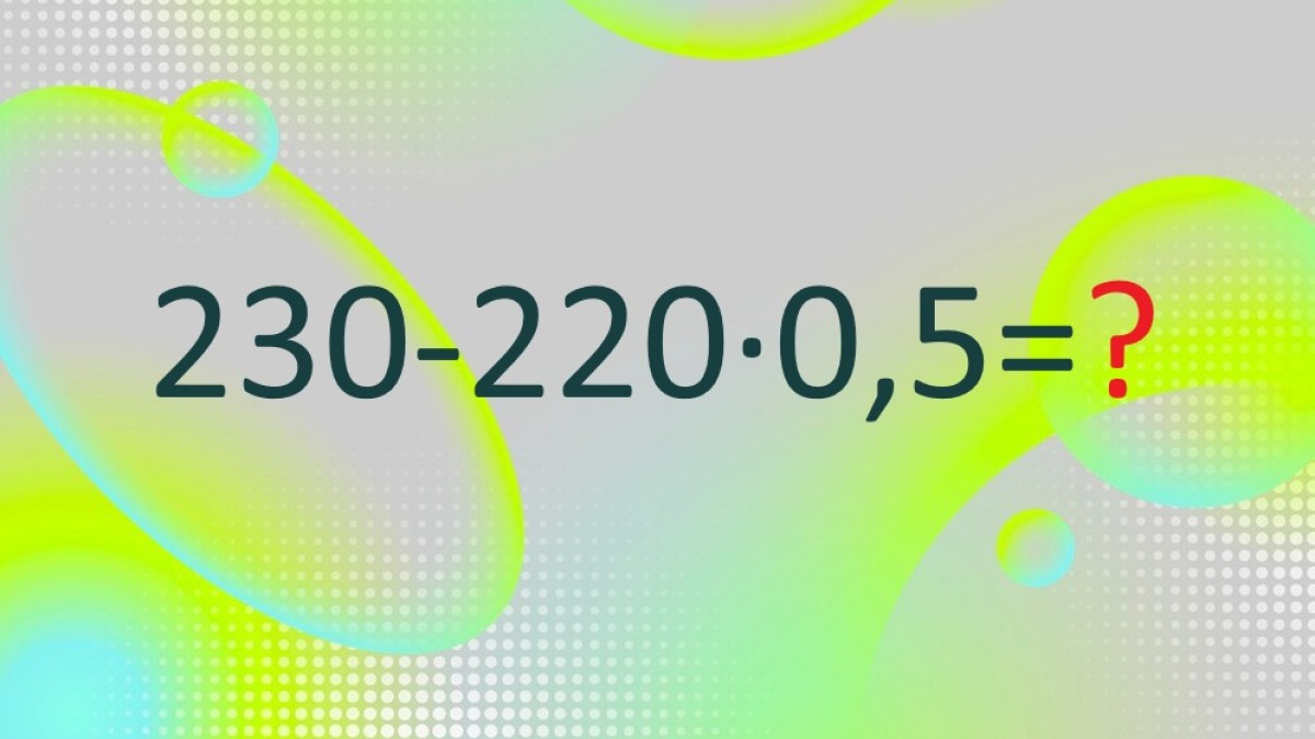 Если вы не прогуливали школу, решение следующего примера окажется делом 10 секунд. Взгляните на иллюстрацию, всего два действия в вашем распоряжении: 230-220·0,5. Не дейте примеру уронить ваше достоинство, будьте внимательнее.