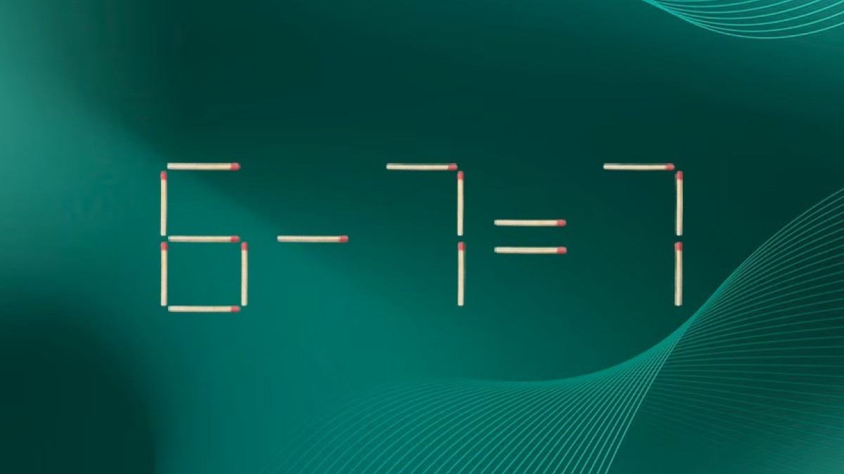 На рисунке показано равенство «6-7=7», составленное из спичек. В примере намеренно допущена ошибка, ваша задача — исправить ее. Разрешается переместить всего один элемент в записи, чтобы исправить ее.
