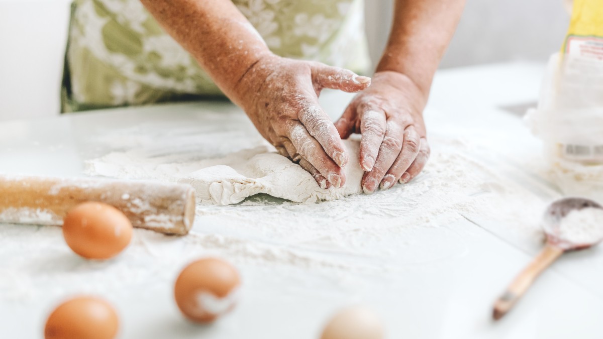 Первым делом поставьте отвариваться картофель и начните заниматься тестом. Перемешайте муку с половиной чайной ложки соли и потом вливайте кефир, постепенно всё перемешивая. Тесто не будет липнуть к рукам и получится эластичным. Всего 10 минут, и его можно убрать отдыхать в холодное место.