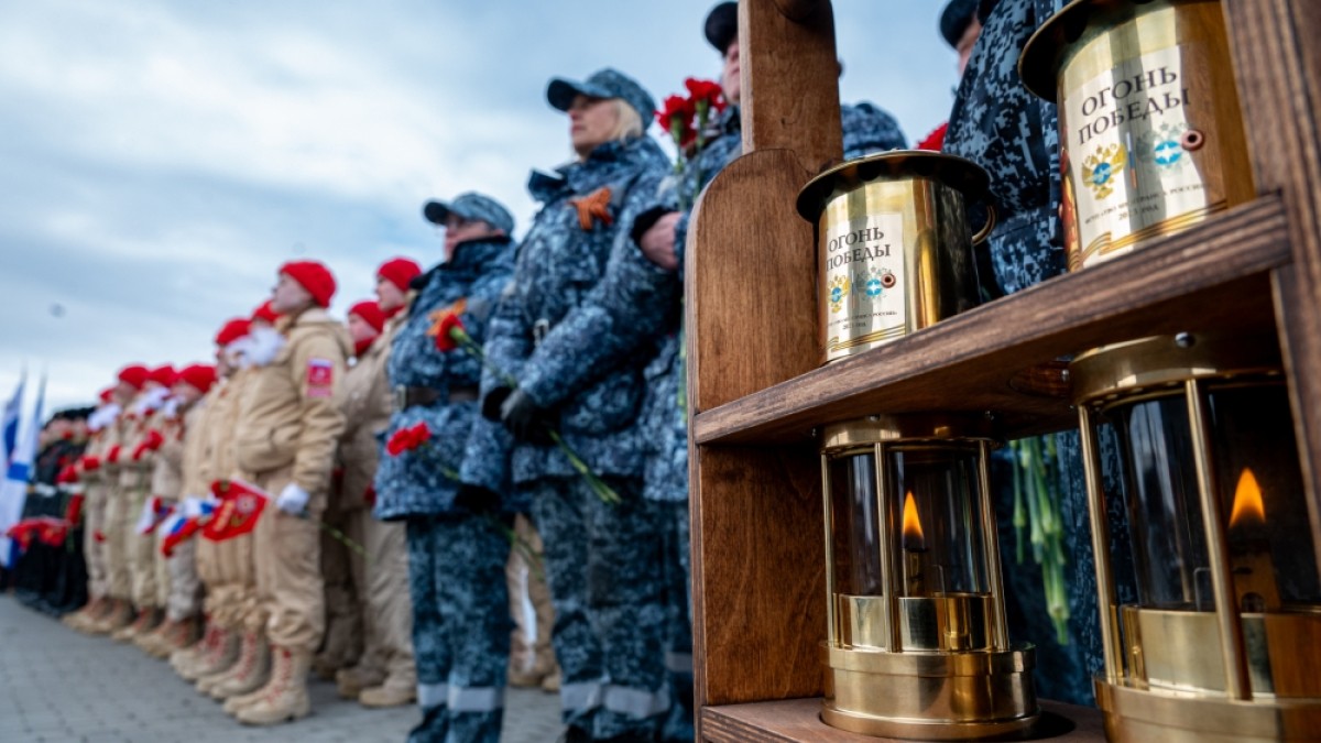 Частицу огня с Поклонной горы в столицу Заполярья доставили сотрудники Северо-Западного филиала ФГУП «Управление ведомственной охраны министерства транспорта РФ». Такие же лампады уехали из Москвы в 12 городов-героев в 2 направлениях — на юг и на север. Финальной точкой акции стали Мурманск и Севастополь.