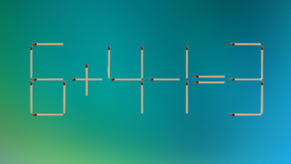 Посмотрите на рисунок, перед нами равенство «6+4-1=3». В примере намеренно допущена ошибка, ведь вам надо переставить спичку, чтобы подсчеты стали верными. Подключите пространственное воображение, перестановка кроется не в цифрах.