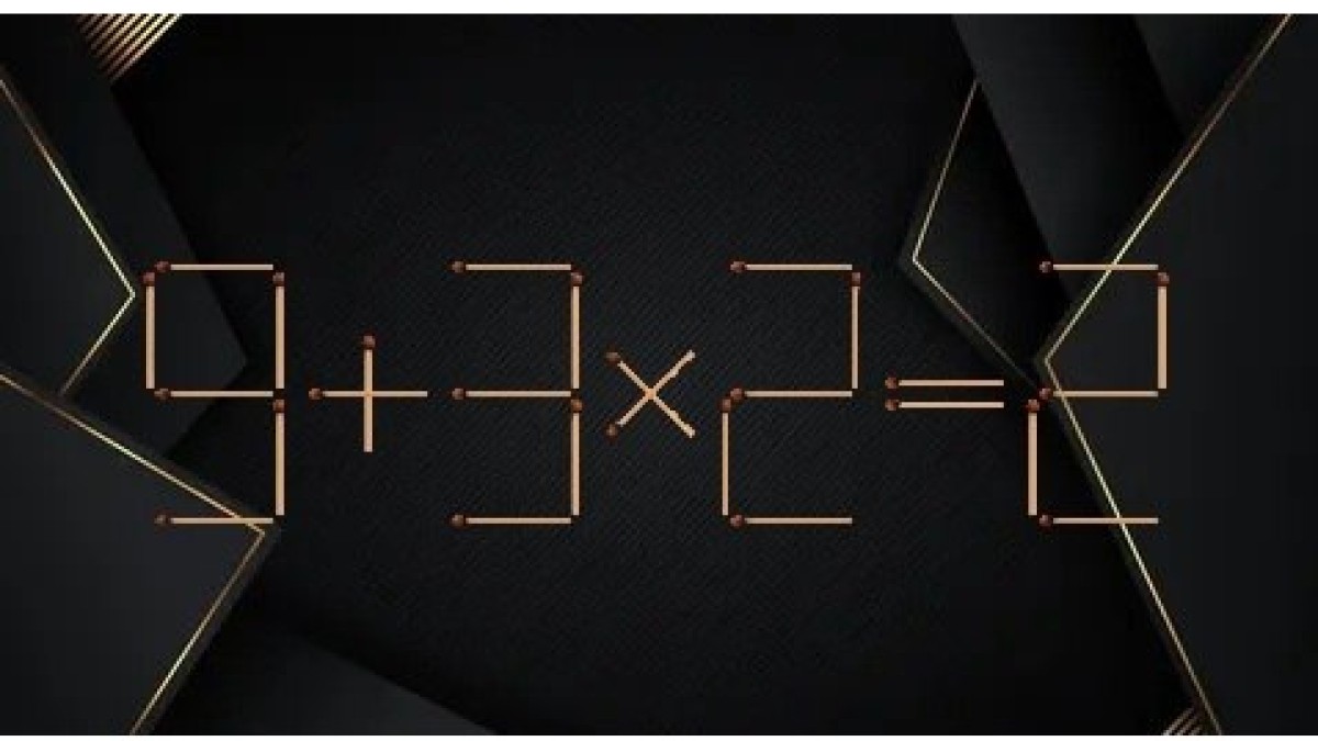 Посмотрите внимательно на иллюстрацию, перед вами спичечное равенство «9+3×2=2». Решение примера неверно, необходимо исправить запись, переставив всего один элемент. Найдите спичку-виновницу беспорядка и восстановите справедливость.