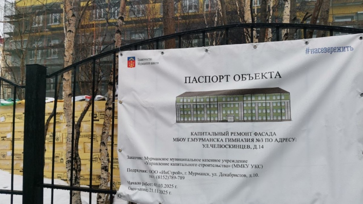 В мурманской Гимназии № 3 начался капитальный ремонт. На воротах школы уже разместили паспорт объекта.