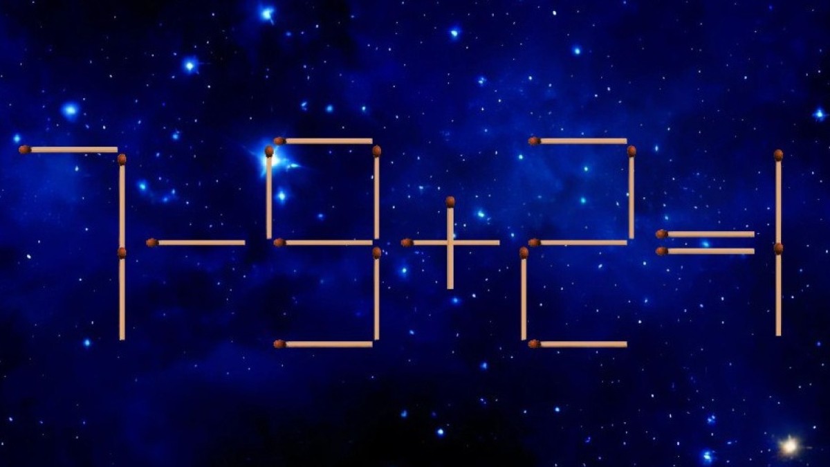 Представляем вам спичечную головоломку, взгляните на рисунок. В примере «7-9+2=1» необходимо исправить ошибку, передвинув только одно звено. Остальные спички оставляем без изменений, все строго.