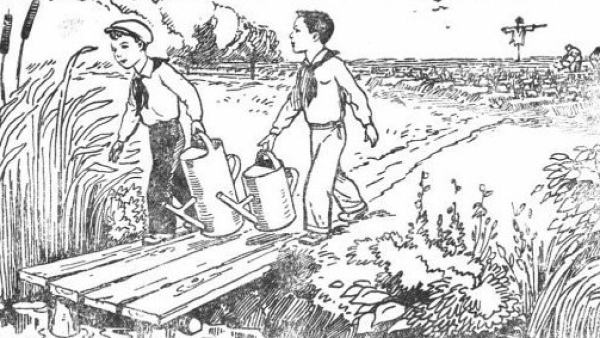 Мальчики пошли набирать воду для полива огорода. У них разные по размеру лейки. Кто принесет больше воды?
