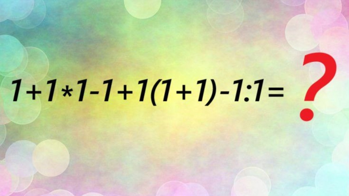 Если вы добились результата, проверим вашу сообразительность детальнее. Сложение в скобках следует выполнить в первую очередь: 1+1=2. Следом обратим внимание на умножение 1·1=1 и деление 1:1=1.