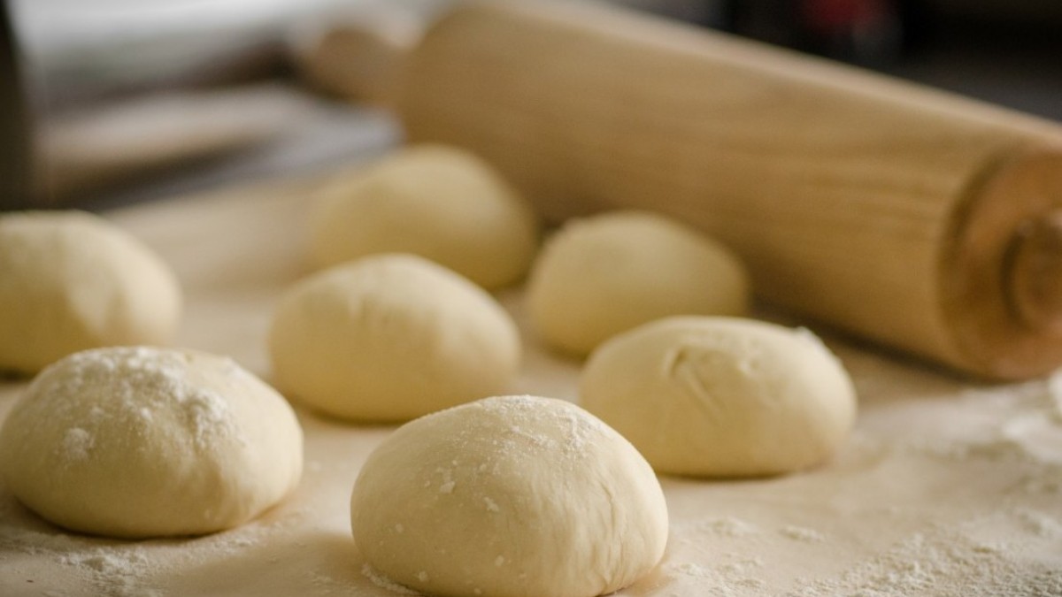 После этого тесто следует обмять и поделить на 4 части. Оно должно постоять еще 15 минут.