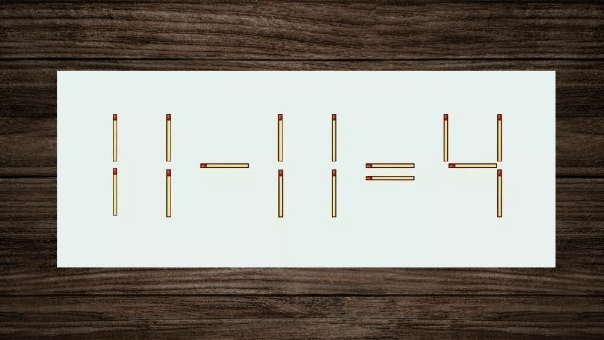 Взгляните на иллюстрацию, вот головоломка на проверку вашей смекалки. В равенстве «11-11=4» допущена ошибка. Переставьте одну спичку в записи, и пример станет верным. Остальные элементы остаются без изменений, будьте бдительны!