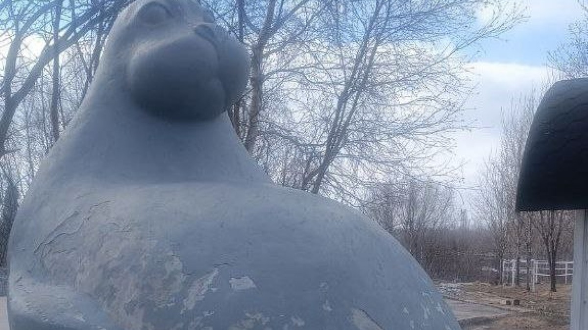 На фото, опубликованном в телеграм-канале аквариального комплекса, невооружённым глазом видны потёртости и прорехи на месте отколовшихся кусков краски. Между тем скульптура является своеобразным символом организации.
