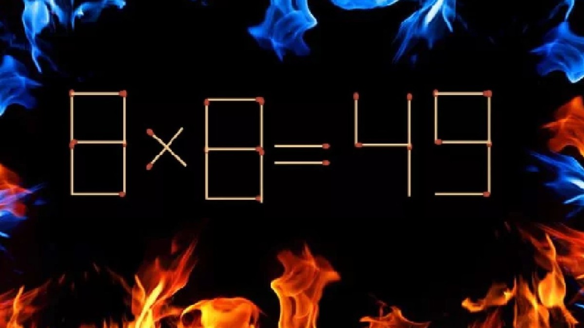 В нашем распоряжении оказалась головоломка со спичками, взгляните на изображение. В равенстве «8×8=49» допущена ошибка, сделать запись верной поможет перестановка всего одного элемента. Умножение по-прежнему останется в примере, это небольшая подсказка.