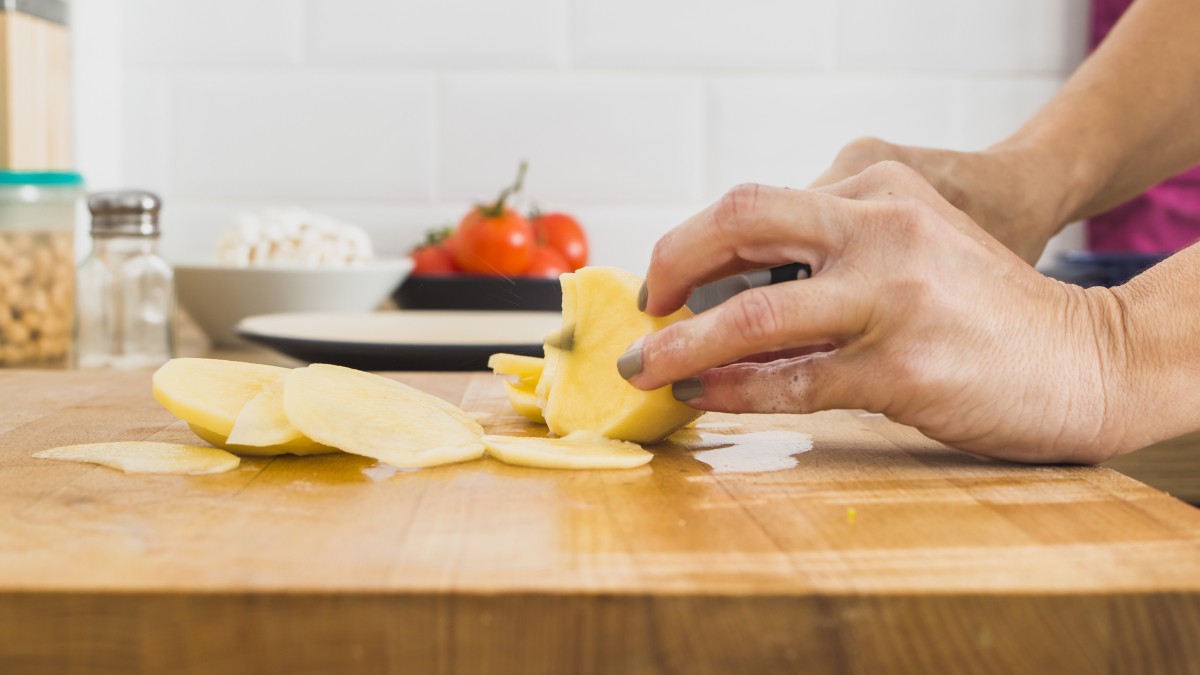 Слоеное тесто вы можете купить в магазине или сделать самостоятельно. А начинка для этого пирога состоит в основном из картофеля. Его нужно порезать тонкими полукружочками, а потом смешать со сливками, яйцом, мукой, специями и сыром.