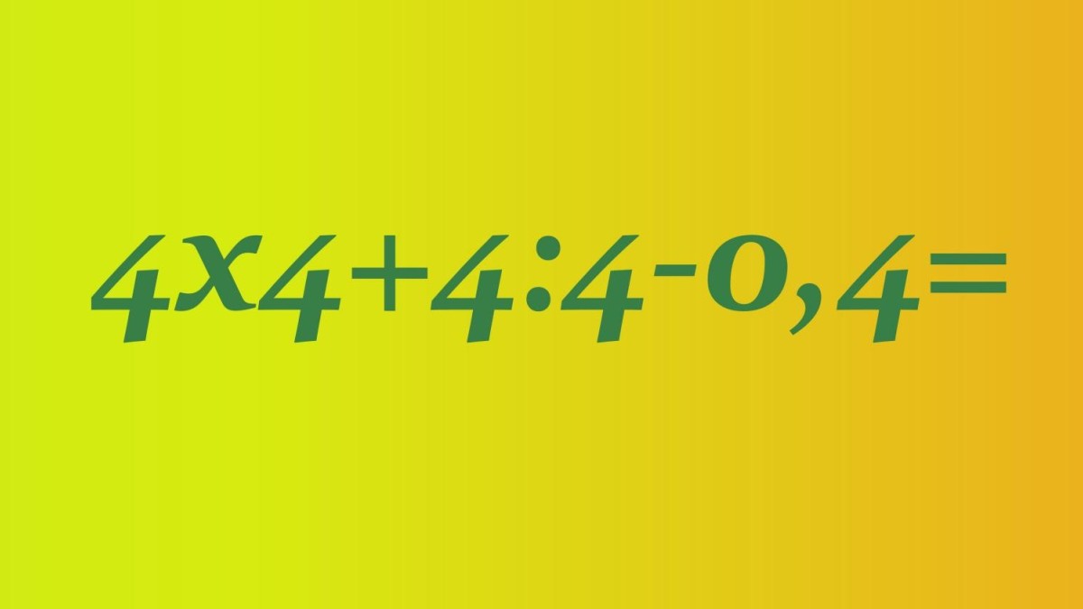 Посмотрите на иллюстрацию внимательно, вот задание для устного счета. В записи 4×4+4:4-0,4 столько четверок, что немудрено и запутаться. Доверяем вам провести верные вычисления всего за 15 секунд. Слабакам здесь не место.