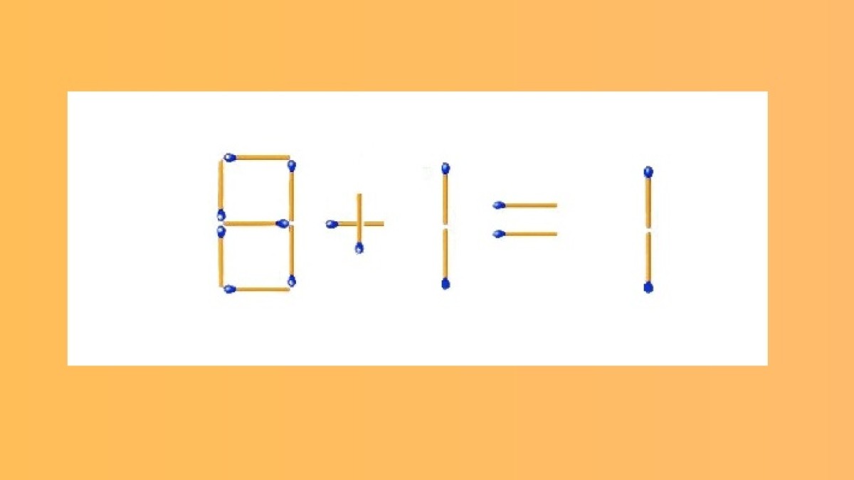 Представляем вашему вниманию головоломку из спичек, посмотрите на рисунок. В примере «8+1=1» допущена ошибка, необходимо сделать вычисления верными. Для этого мы можем переставить только один элемент, остальные спички не ломаем и не трогаем, всё честно.