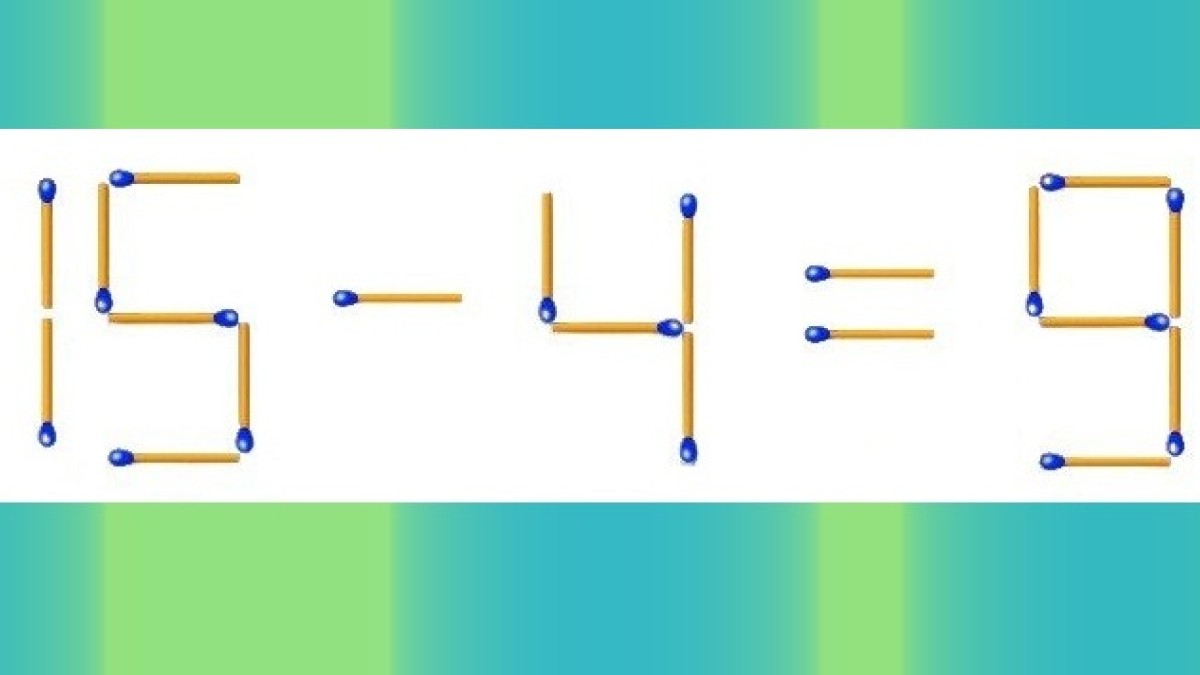 Вам предстоит испытание спичечной головоломкой, посмотрите на рисунок. Дан пример «15-4=9», содержащий ошибку. Постарайтесь исправить запись, переместив всего одну спичку. Иногда такая мелочь меняет всю картину существенно.