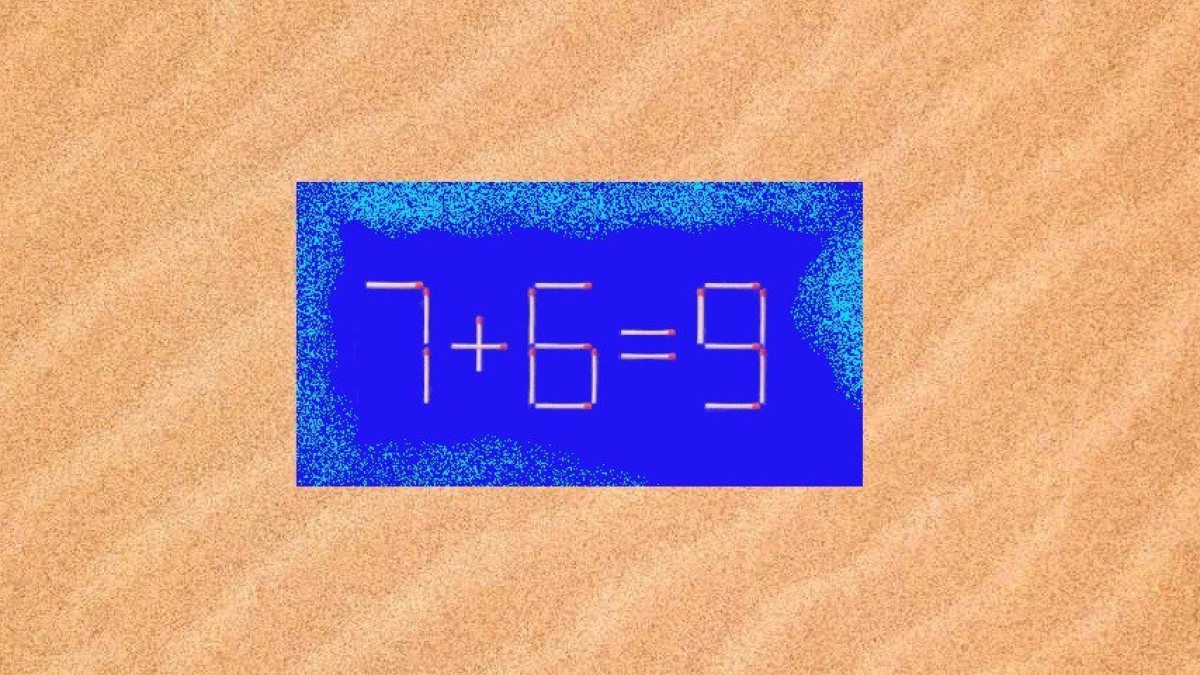 Посмотрите на иллюстрацию, в вашем распоряжении пример «7+6=9», составленный из спичек. В равенство закралась ошибка, придется пораскинуть мозгами, чтобы правильно выбрать спичку для исправления записи. Переставить разрешается всего один элемент.