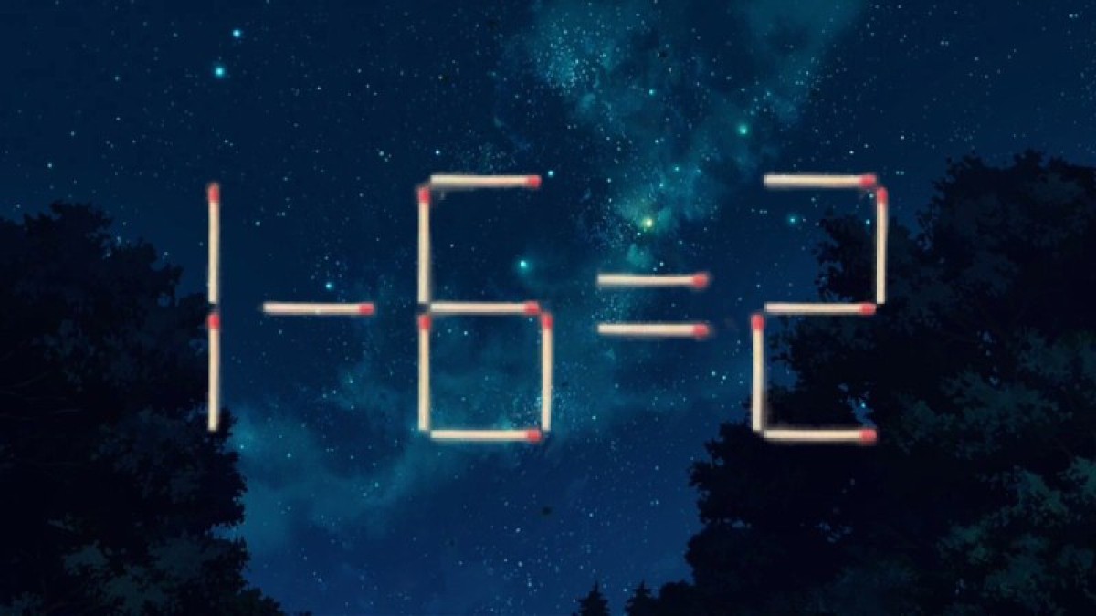 Посмотрите на иллюстрацию, в вашем распоряжении визуальная головоломка. Пример «1-6=2» составлен из спичек, вам предстоит исправить ошибку. Переставьте всего один элемент в этой записи так, чтобы равенство стало верным.
