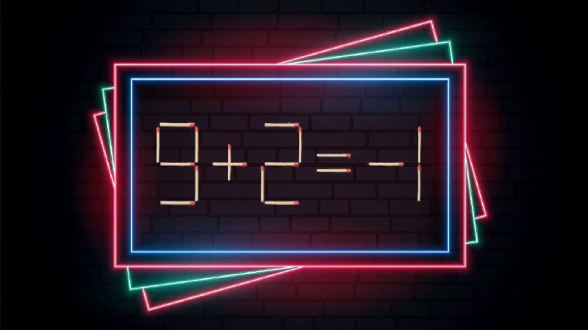 Посмотрите на иллюстрацию, пора проверить ваше пространственное мышление в деле. Из спичек составлено равенство «9+2=-1», ошибку в записи необходимо исправить. Достаточно переставить всего один элемент, чтобы правила арифметики не страдали, проявите себя!