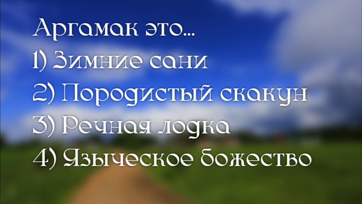 Всё кажется просто, аргамаком часто называют детские снегокаты и вариант 1 кажется очевидным. Слово довольно необычное, так может это одно из бесчисленных языческих божеств?