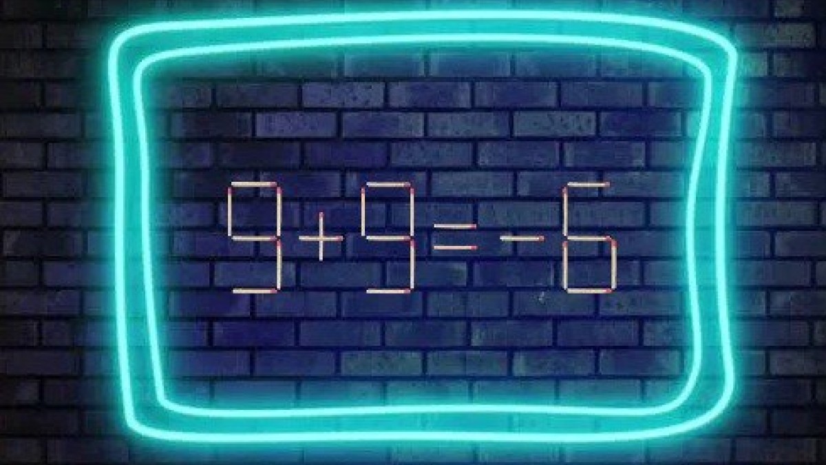 На иллюстрации показано равенство «9+9=-6», составленное с ошибкой. Исправить ошибку в записи поможет перестановка всего одного элемента. Найдите спичку-виновницу беспорядка и подкорректируйте запись.