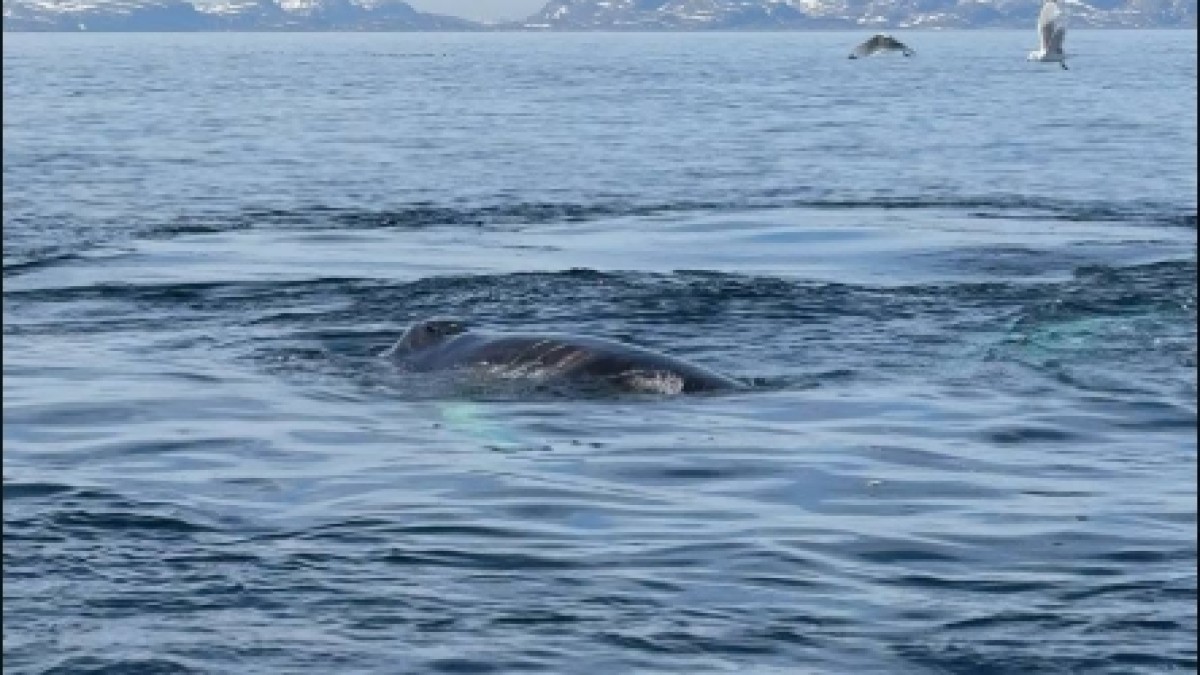 Кит Станислав вновь приплыл в Териберку. В прошлом году глубоководного гиганта спасли от удушения веревкой, в которой запутался бедняга. Фото и видео большого млекопитающего опубликовали в чате «Киты Териберки».