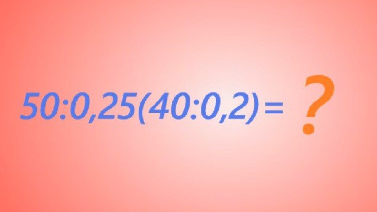 Взгляните на изображение, перед вами пример для устного счета. Вычислить 50:0,25(40:0,2) будет непросто, школьная практика осталась в прошлом. Пора засучить рукава и напрячь извилины, на решение дается всего 25 секунд.