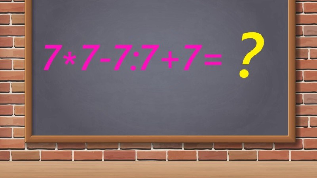 Представляем вашему вниманию пример для устного счета. Пять семерок вскружат голову любому, высчитайте побыстрее 7×7-7:7+7, ведь дальше таблицы умножения дело не пойдет.