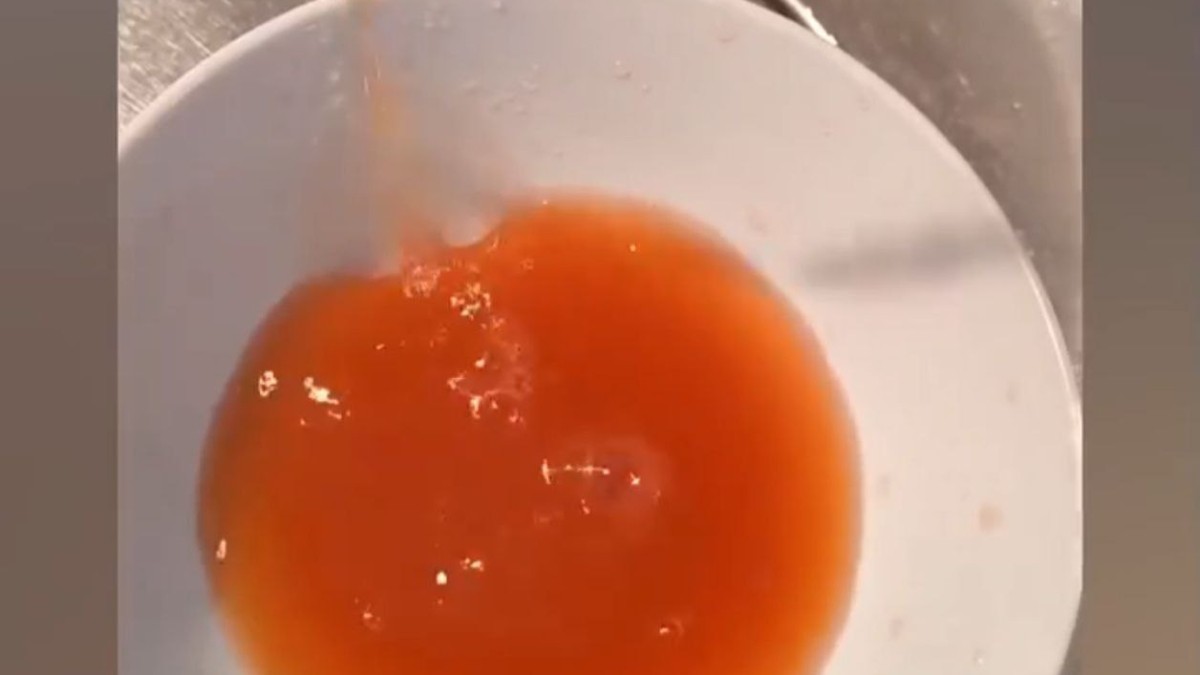 Жильцы дома № 13 по улице Зелёной (Росляково, Мурманск) опубликовали в социальных сетях видео, на котором из их кранов течет ярко-оранжевая жидкость, больше похожая на газированный напиток Fanta, чем на воду, которую можно кипятить и использовать для приготовления пищи.