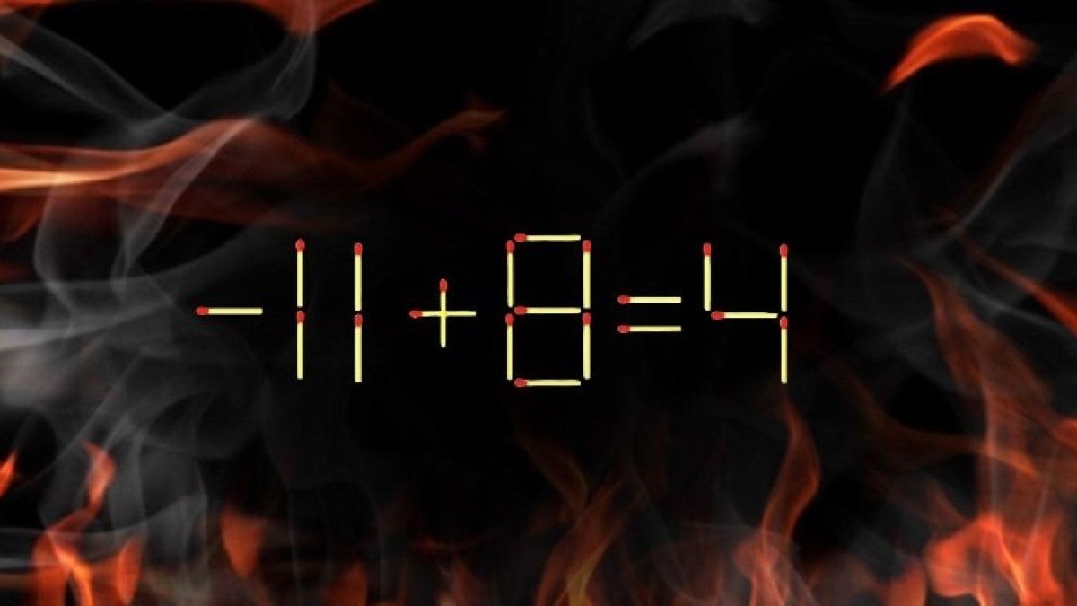 Посмотрите на иллюстрацию, перед вами непростая головоломка. Пример «-11+8=4» намеренно составлен с ошибкой, вам необходимо переместить одну деталь, чтобы равенство стало верным. Смелее беритесь за спички, вариантов перестановки много.