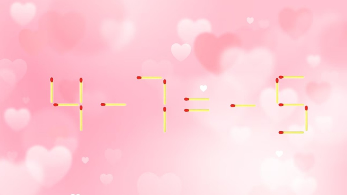Посмотрите на иллюстрацию, в вашем распоряжении математическая головоломка. Из спичек составлено неверное равенство «4-7=-5», необходимо исправить ошибку в записи, переместив один элемент. Догадайтесь, какая спичка лежит не на своем месте.