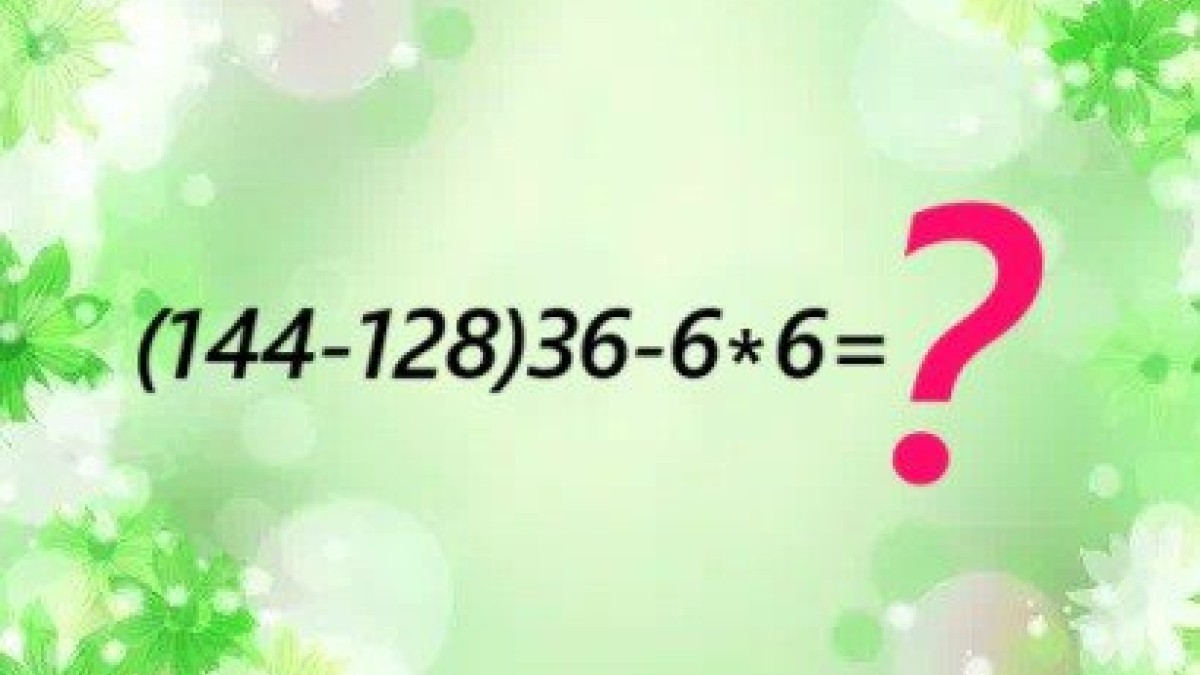 Полезной практикой является решение школьных примеров, ведь они кажутся простыми только на первый взгляд. Постарайтесь не отстать от хорошистов в решении примера, показанного на рисунке. На вычисления (144−128)36−6×6 у вас всего 25 секунд.