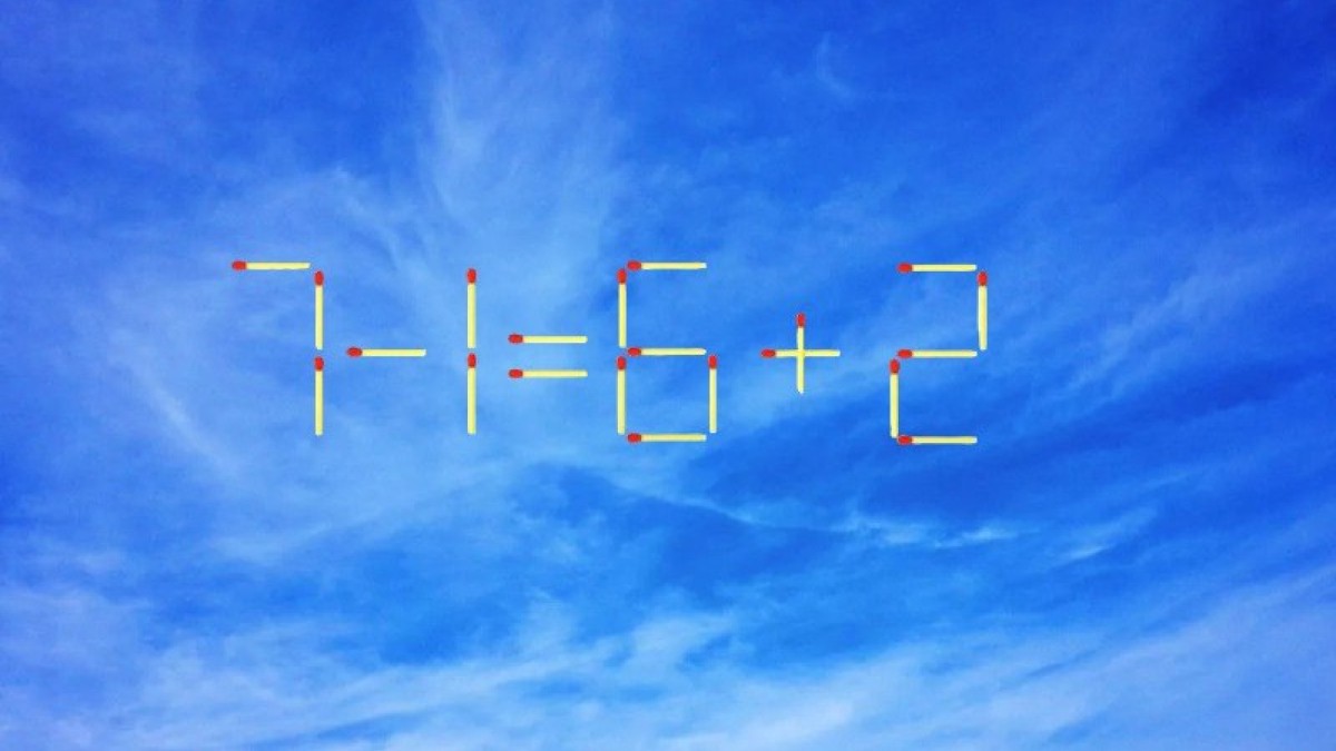 Представляем вашему вниманию спичечную загадку, показанную на рисунке. Пример «7-1=6+2» содержит ошибку, ваша задача — исправить запись. Перемещение всего одной спички сделает равенство верным, это вызов стратегическому мышлению.