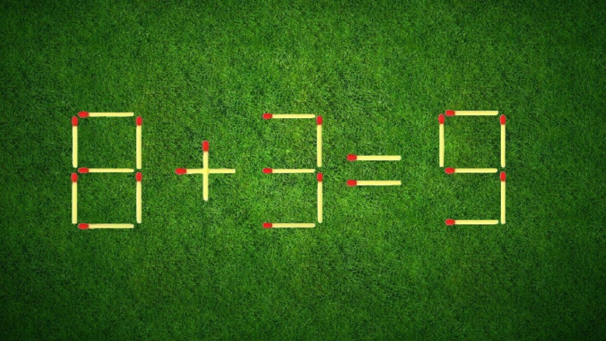 Пример «8+3=9» явно составлен с ошибкой, найдите способ исправить запись. Разрешается переместить только один элемент, а другие детали не ломаем и не убираем, всё строго.