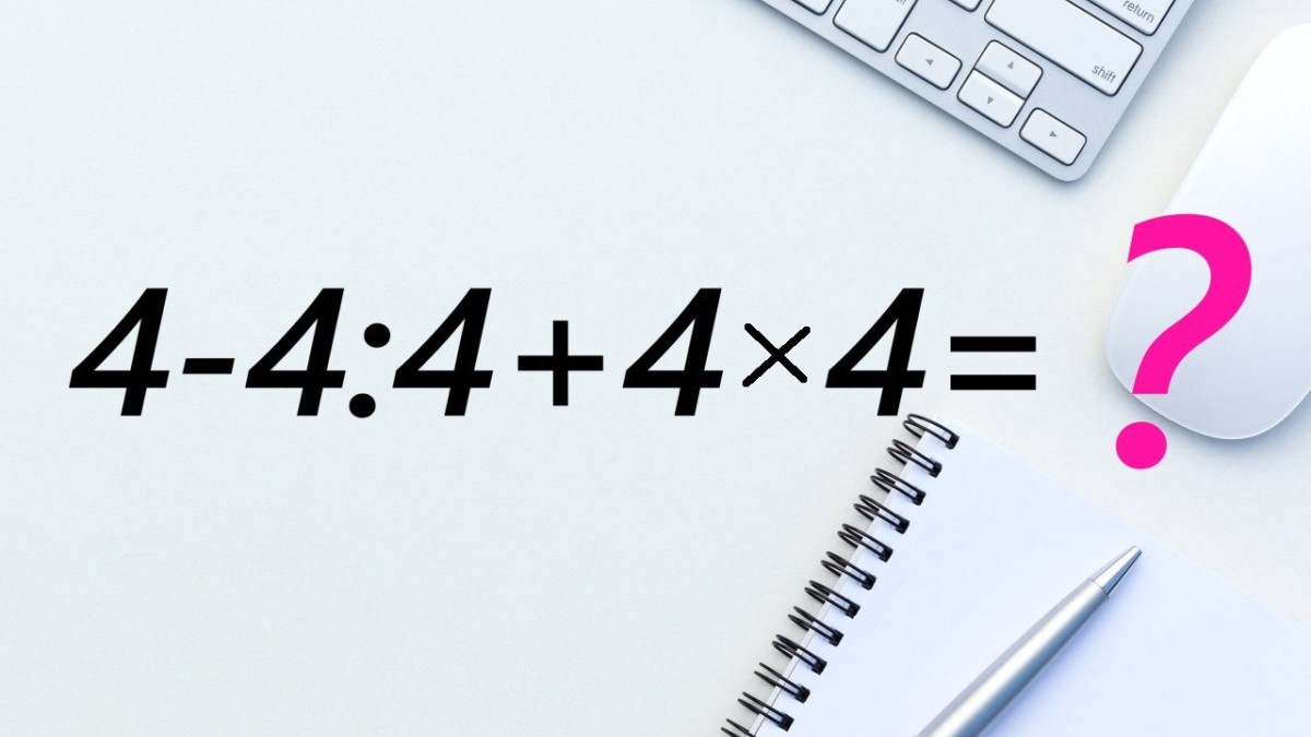 Взгляните на иллюстрацию. Прямо сейчас у вас есть возможность проверить свои силы в решении примера 4-4:4+4×4. Всего четыре действия не займут много времени.